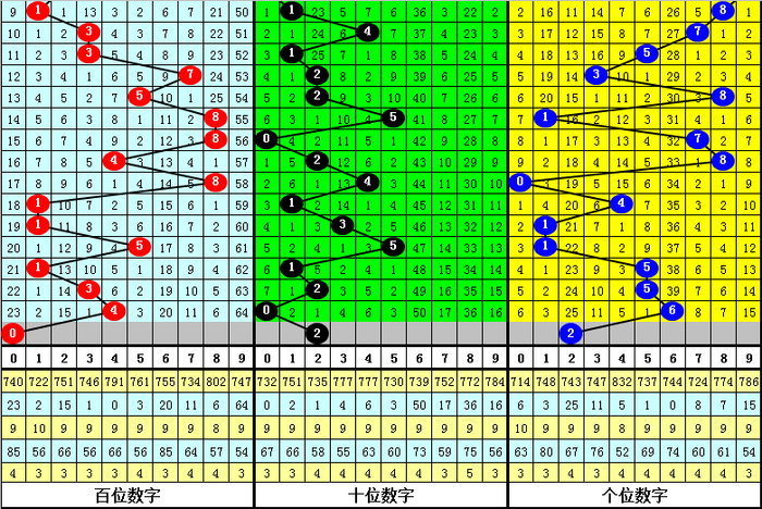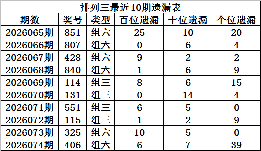 十位:上期为0,近10期012路比为3:3:4,其中0路号遗漏3期出现,本期排斥0路号,戒备2路号出现,眷注2。